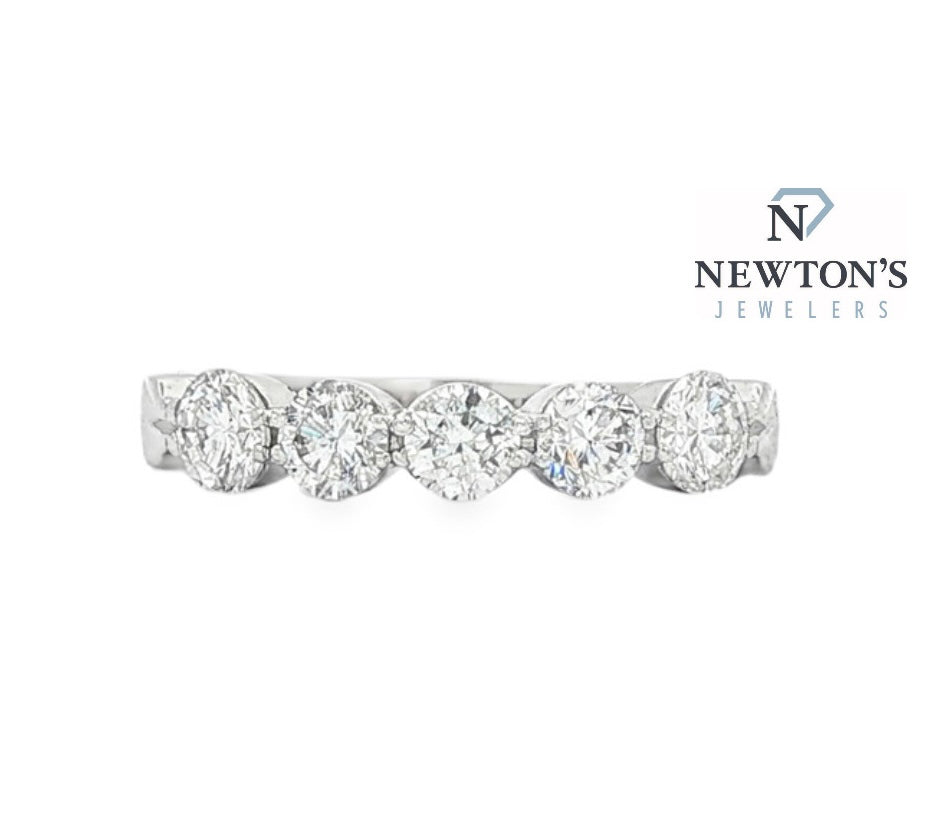 Crafted in 14K white gold, this stunning diamond band features 1.00 carat total weight of round brilliant diamonds graded H color and SI1 clarity. The shared-prong design allows each diamond to shine beautifully, creating a seamless row of brilliance. Perfect as a wedding band, anniversary ring, or stackable statement piece.