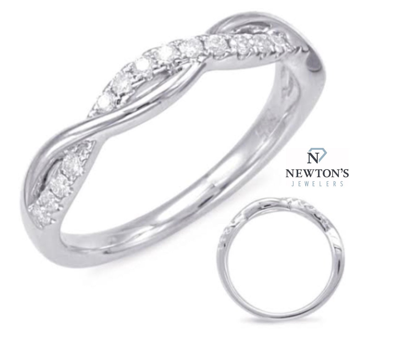 This 14kt white gold diamond band boasts a striking twist design, with 0.15 ct tw of round brilliant cut diamonds.
