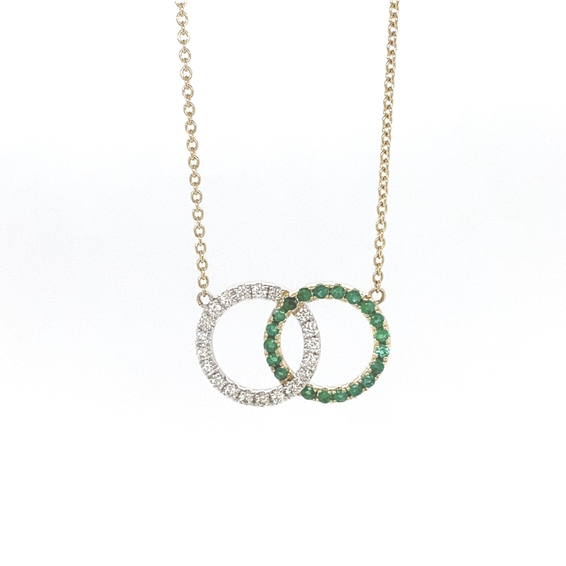 This elegant 14kt yellow and white gold necklace showcases 0.21ct emeralds and 0.20ct diamonds, creating a stunning and luxurious piece. The green emeralds add a touch of color, while the sparkling diamonds bring a touch of glamour. Perfect for any occasion, this necklace is sure to impress.