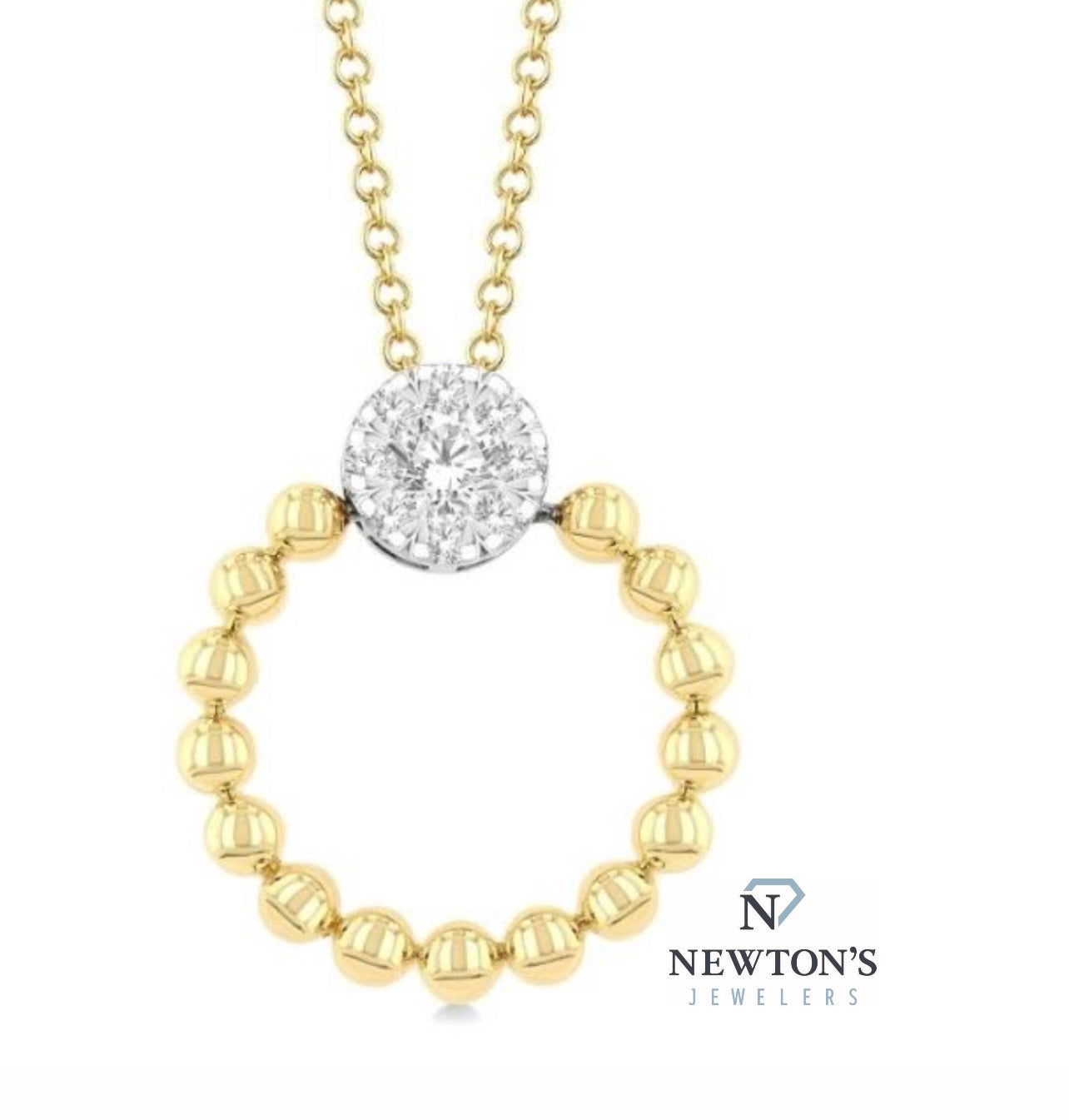 A refined 10kt yellow gold pendant featuring delicate beading work and a brilliant round diamond weighing .15 carats.